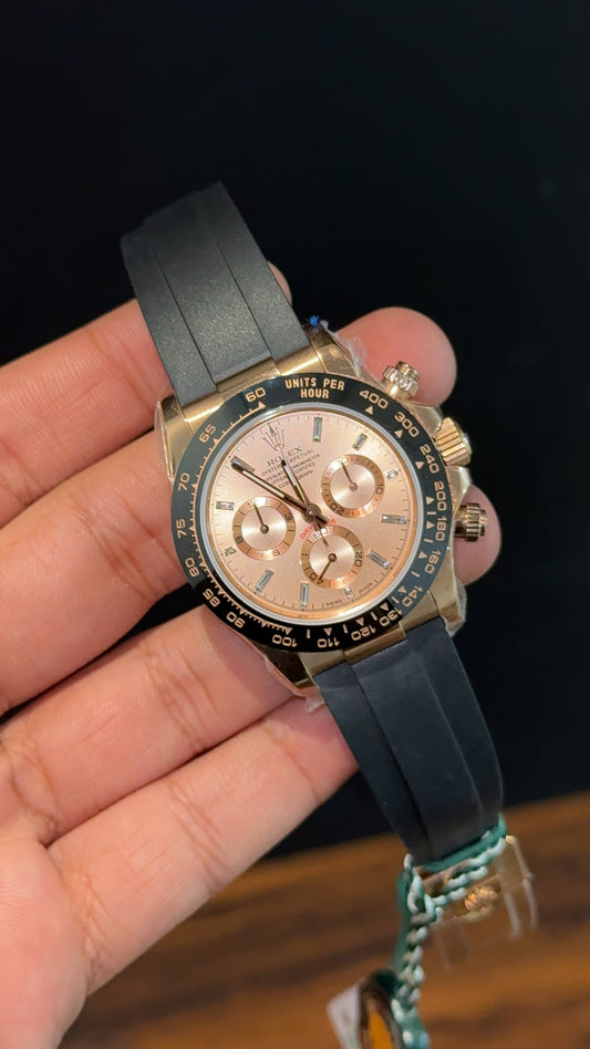 Executive Daytona | Rose | Black PVC Strap | Chrono | Rose Dial