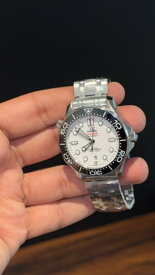 Executive Omega Seamaster | Silver Chain | Black Bezel | White Dial