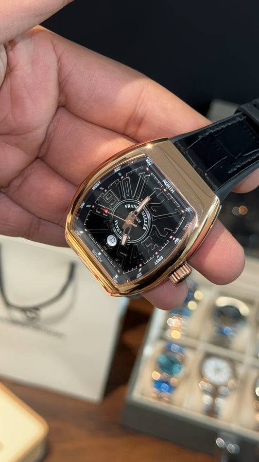 Premium Franck Muller | Vanguard Edition | Rose Case | Black Strap | Black Dial