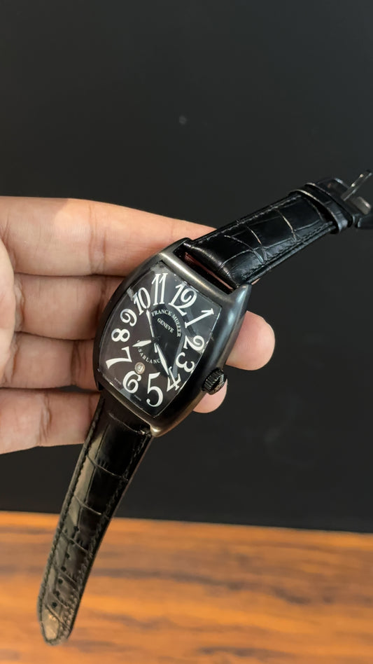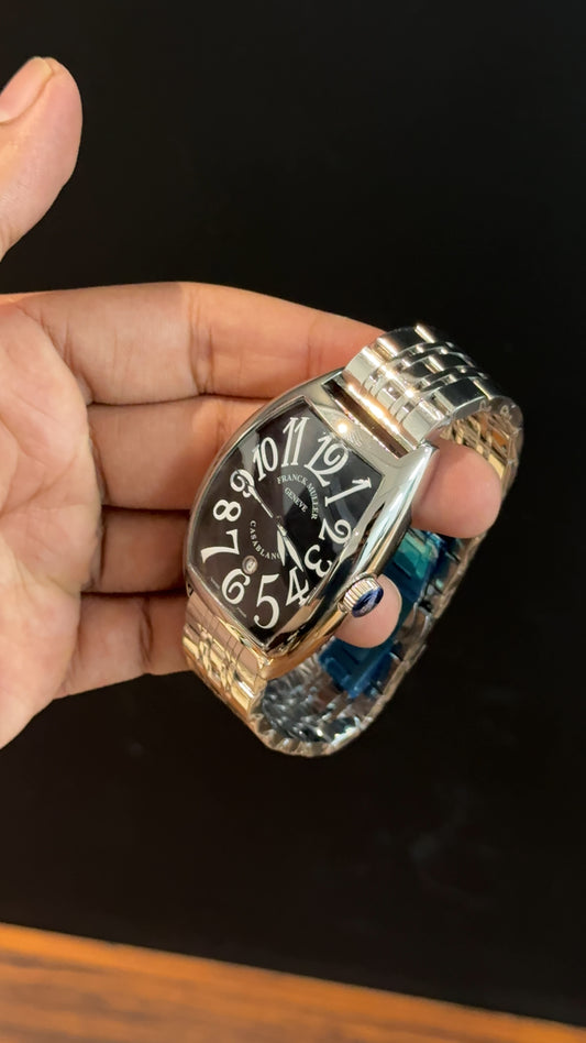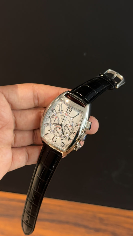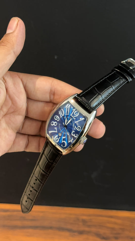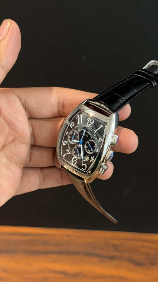 Franck muller | Silver | Black Leather Strap | Blue Chrono | Black Dial