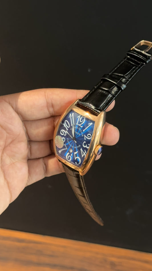 Franck muller Rose | Black Leather Strap | Blue Dial