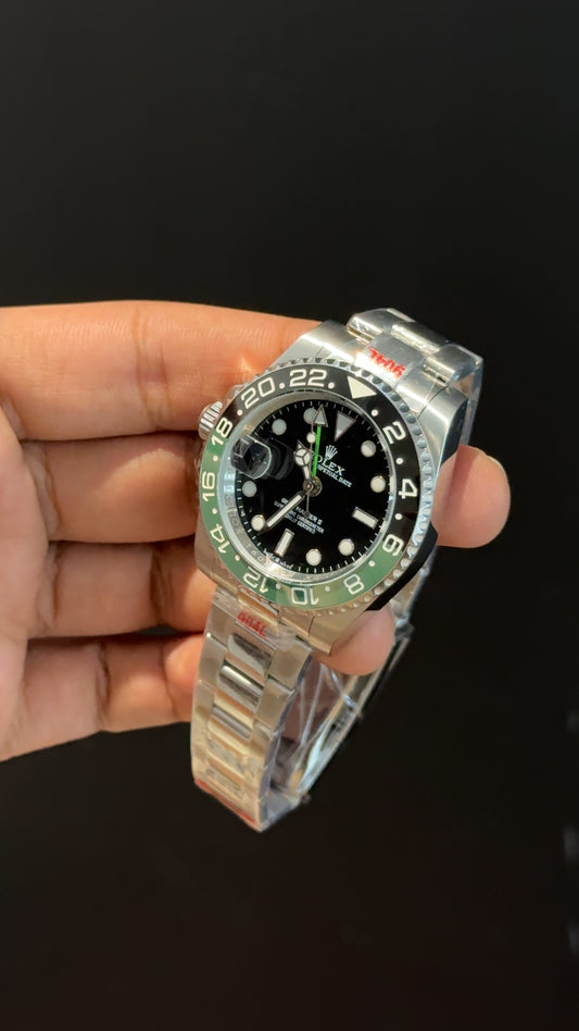 GMT Sprite | Silver Oyester Chain | Black Dial