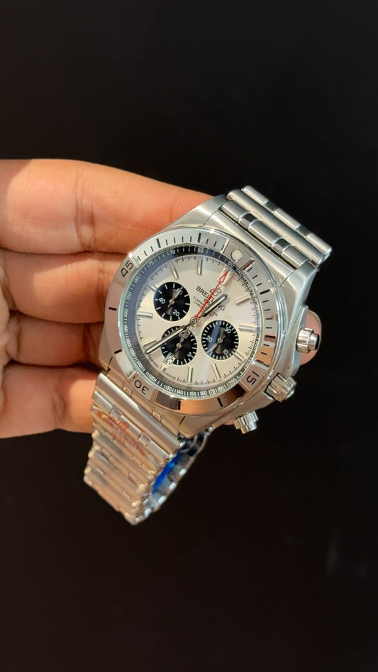 Brietling | Silver Chronomat Chain | Black Chrono | White Dial