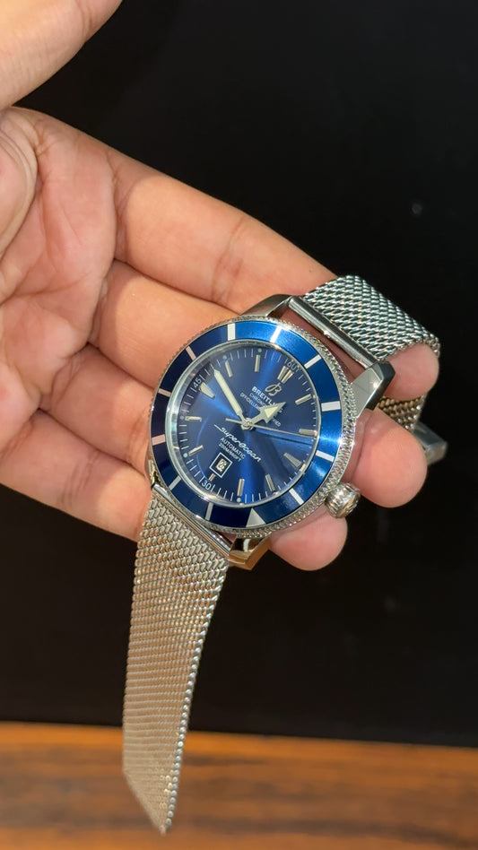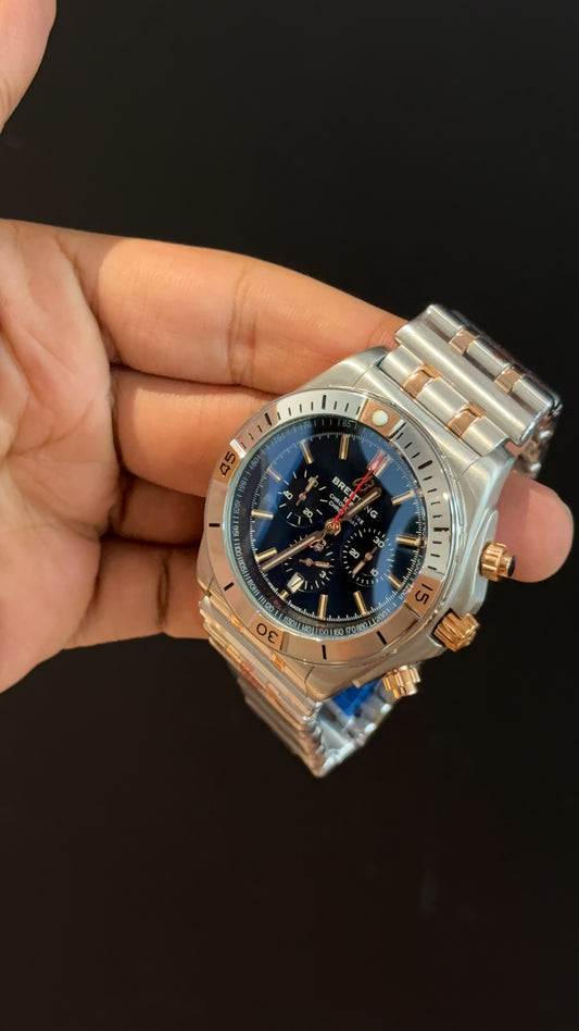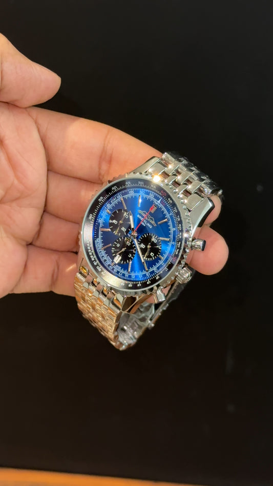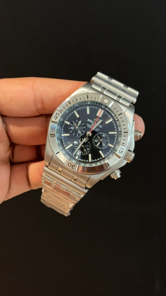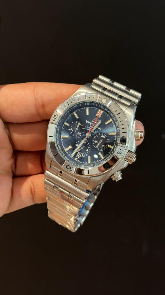 Brietling | Silver Chronomat Chain | Black Chrono |Blue Dial