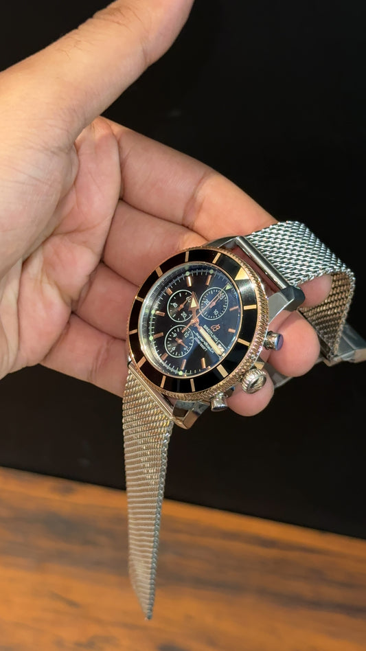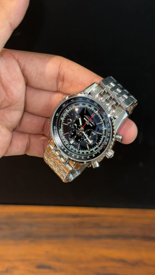 Brietling | Silver Magnetic Chain | Chrono | Silver Digits Black Dial