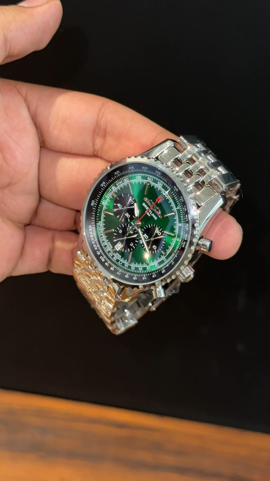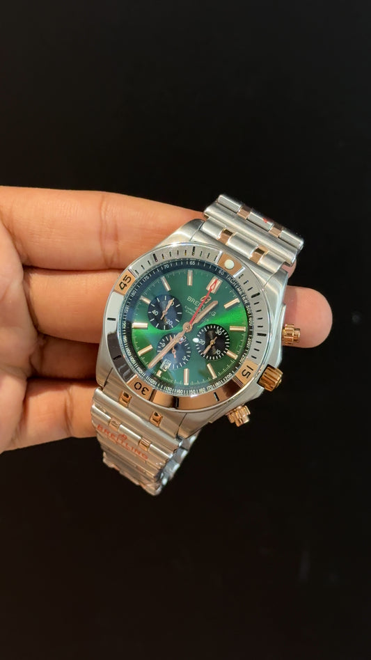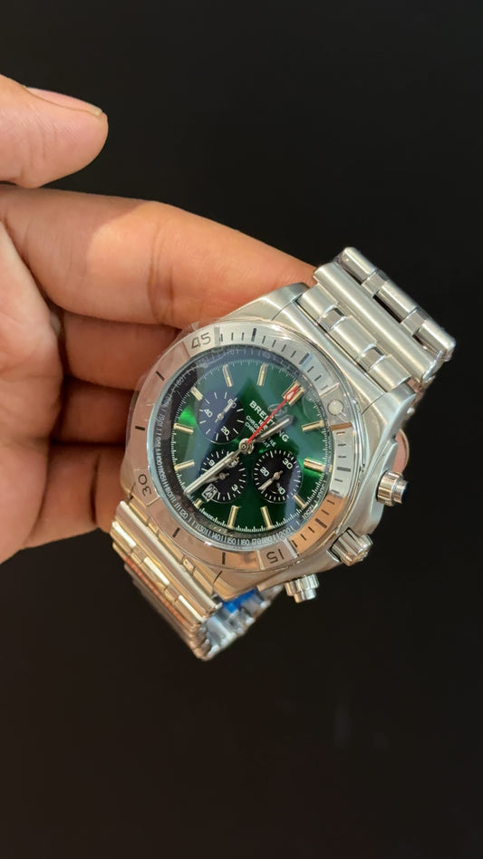 Brietling | Silver Chronomat Chain | Black Chrono | Green Dial
