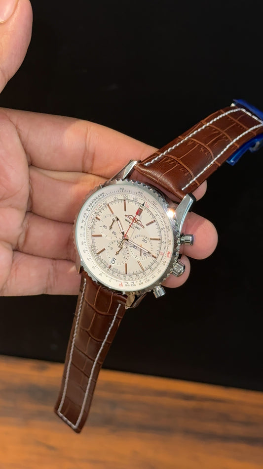 Brietling | Brown Leather Strap |Chrono | White Dial