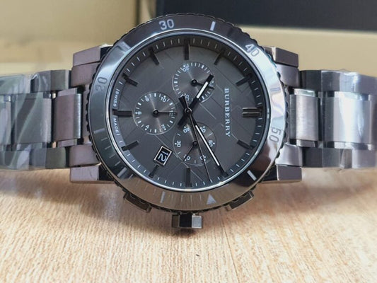 Burberry Men’s Black Stainless Steel Dark Grey Dial 42mm Watch BU9381