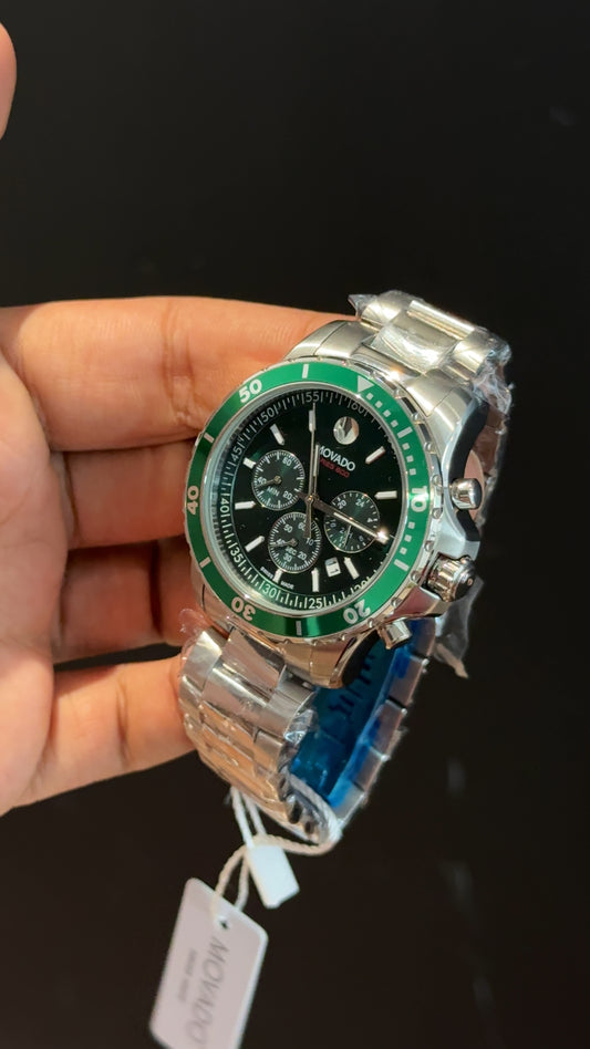 Movado | Silver Chain | Green Bezel | Chrono | Green Dial
