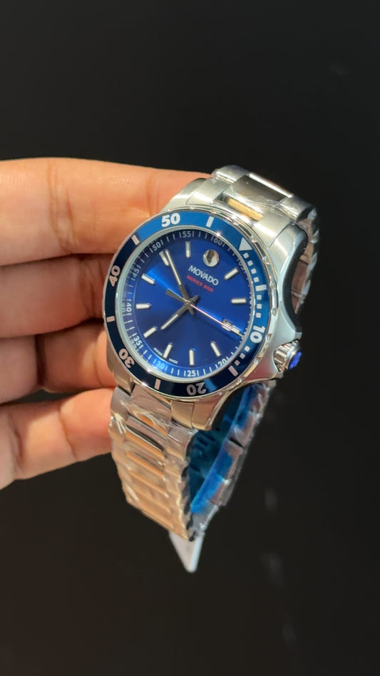 Movado | Silver Chain | Blue Bezel | Chrono | Blue Dial