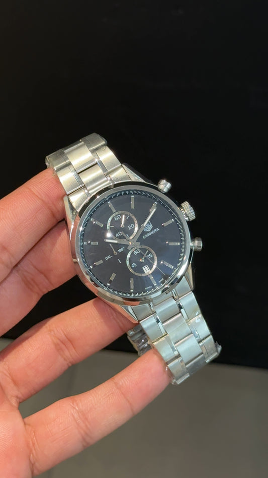 Tag Carrera Auto | Silver Chain | Blue Dial