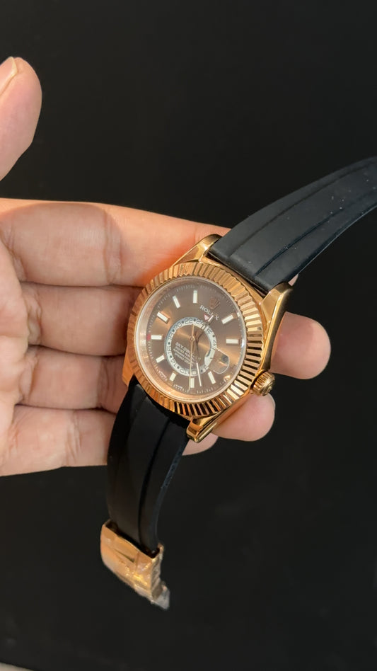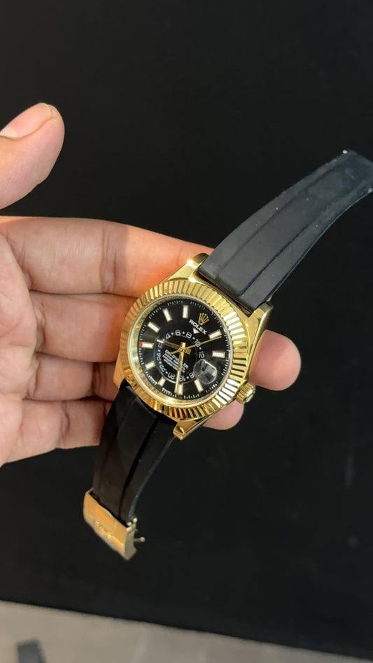 Sky Dweller | Gold | Pvc Strap | Black Dial