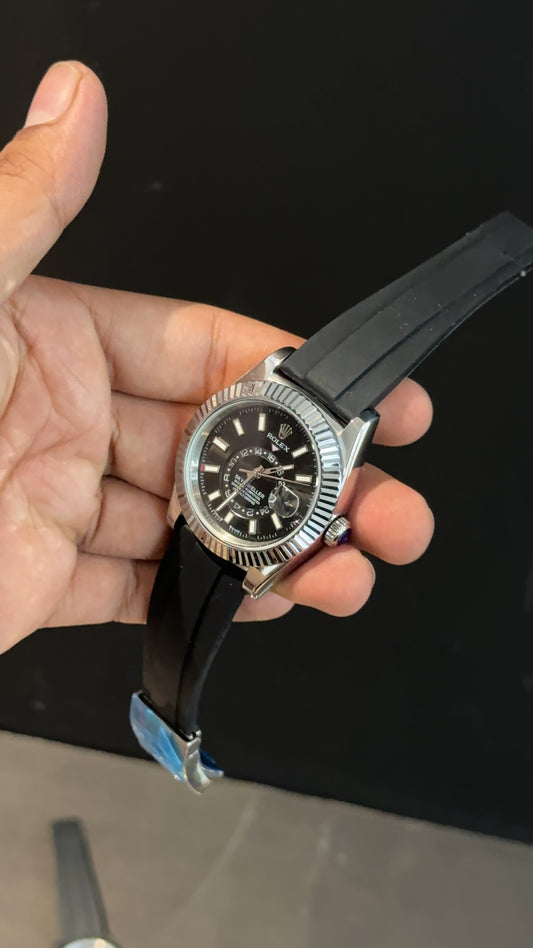 Sky Dweller | Silver | Pvc Strap | Black Dial