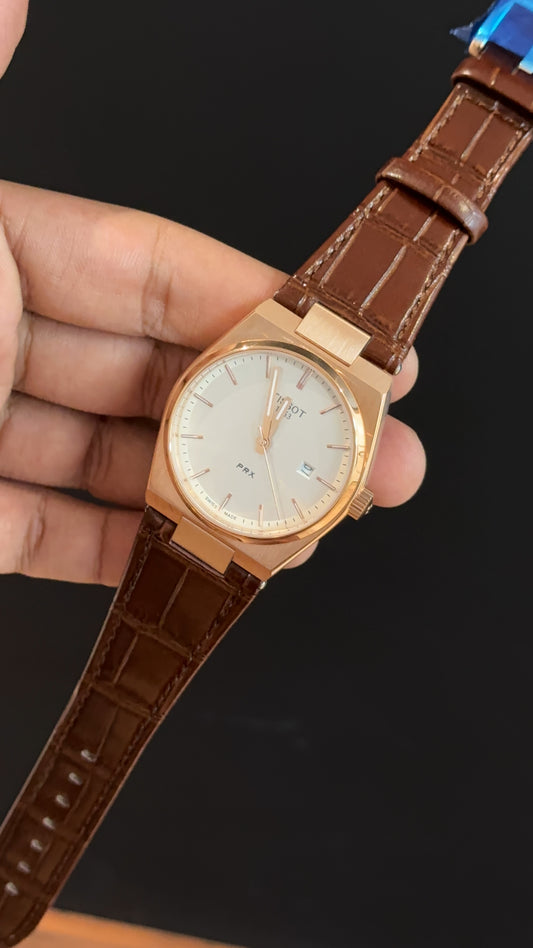 Tissot Prx | Rose Case | Brown Leather Strap | White Dial