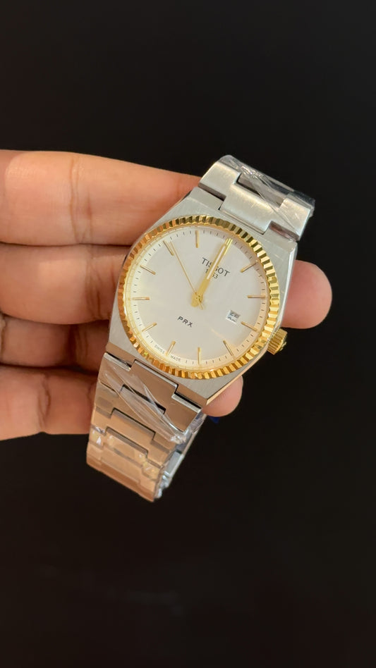 Tissot Prx | Silver Chain | Gold Bezel | White Plain Dial