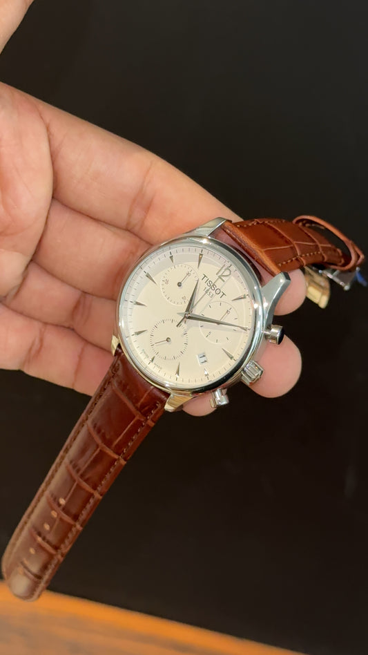 Tissot Silver | Chrono | Brown Leather Strap | White Dial