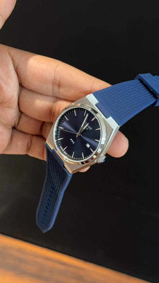 Tissot Prx | Silver Case | Blue Silcone Strap | Blue Plain Dial