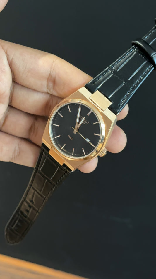 Tissot Prx | Rose Case | Black Leather Strap | Black Dial