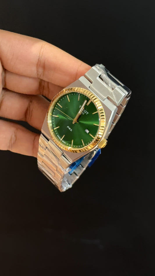 Tissot Prx | Silver Chain | Gold Bezel | Green Plain Dial