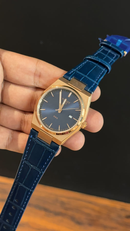 Tissot Prx | Rose Case | Blue Leather Strap | Blue Plain Dial