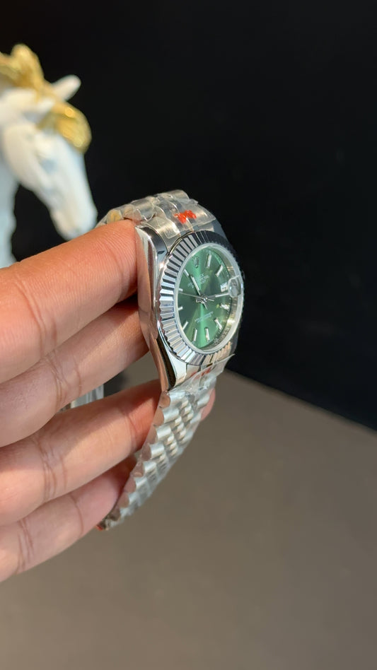 Datejust 27mm | Silver Jubilee Chain | Green Dial