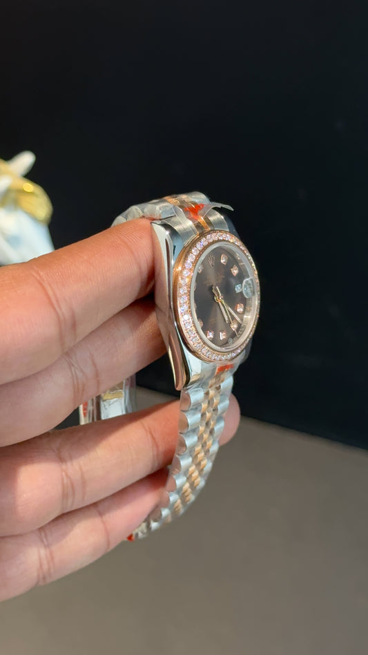 Datejust 27mm | Rose Two Tone Jubilee| Diamond Case | Diamond Choco Dial
