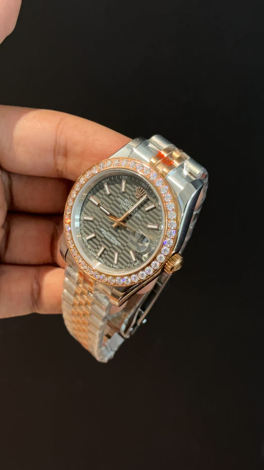 Datejust | Diamond Bezel | Rose Two Tone | Grey Textured Dial