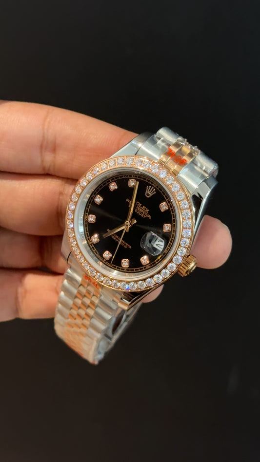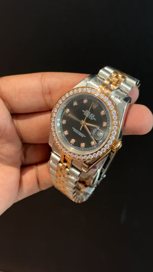 Datejust | Diamond Bezel | Rose Two Tone | Black Diamond Dial