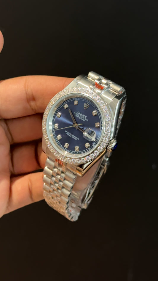 DateJust | Diamond Bezel | Silver Chain | Blue Diamond Dial