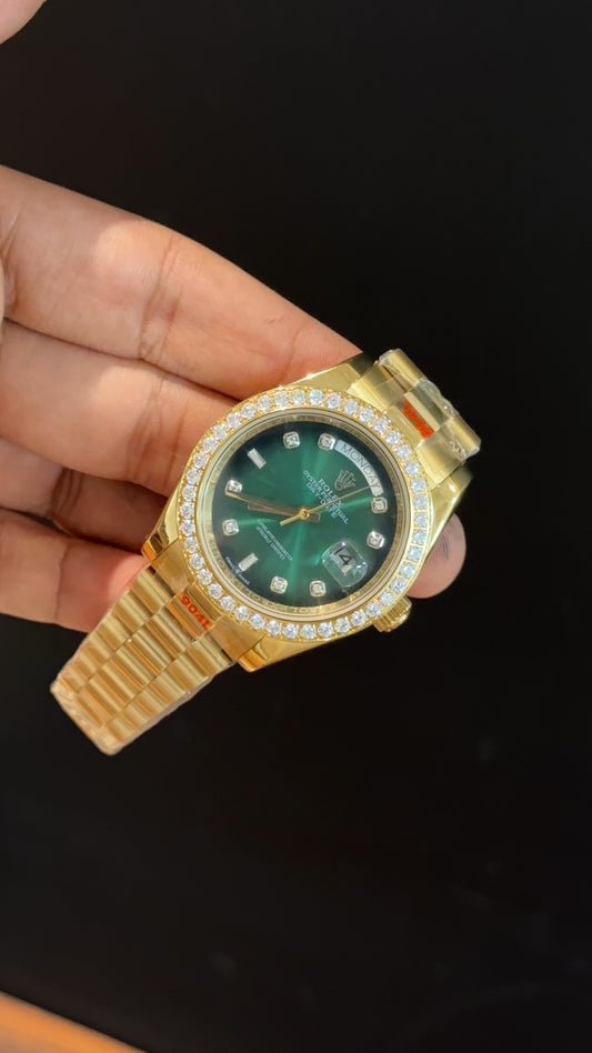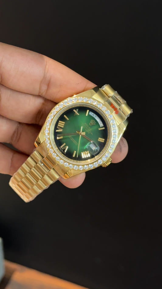Daydate | Diamond Bezel | Gold Chain | Gradient Green Dial