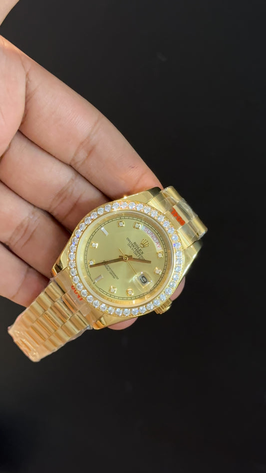 Daydate | Diamond Bezel | Gold Chain | Gold Diamond Dial