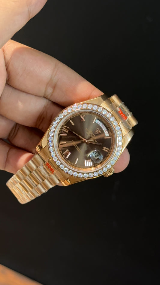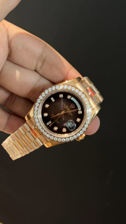 Daydate | Diamond Bezel | Rose Chain | Diamond Digit | Gradient Choco Dial