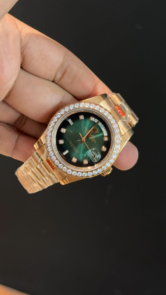 Daydate | Diamond Bezel | Rose Chain | Diamond Digit | Gradient Green Dial