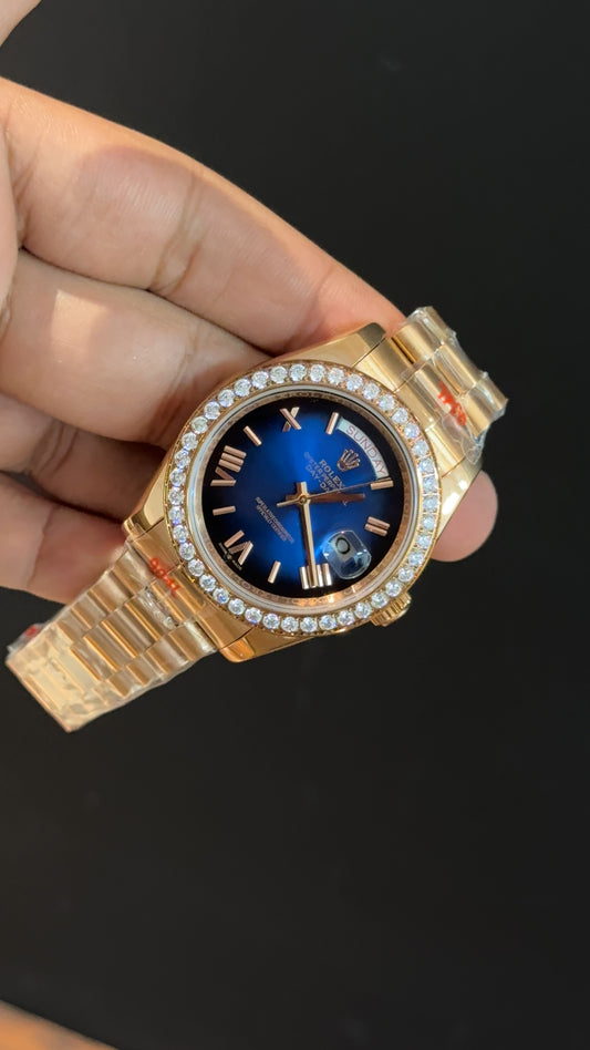 Daydate | Diamond Bezel | Rose Chain | Gradient Blue Dial