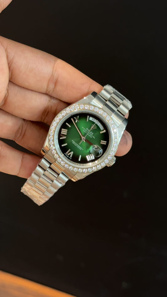 Daydate | Diamond Bezel | Silver Chain | Gradient Green Dial
