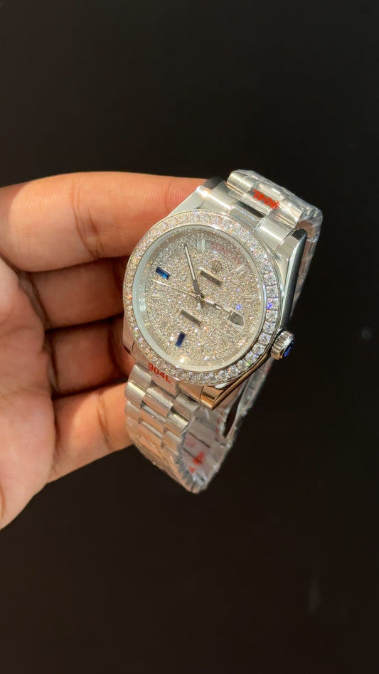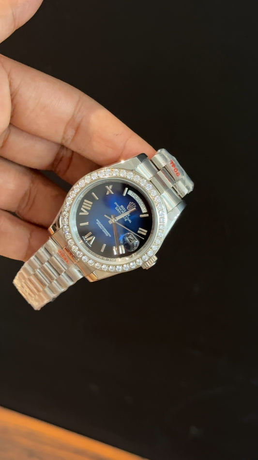 Daydate | Diamond Bezel | Silver Chain | Gradient Blue Dial
