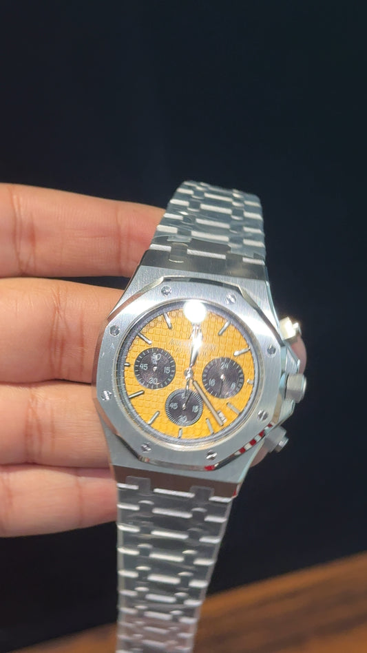 AP | Black Chrono | Silver Chain | Yellow Box Dial