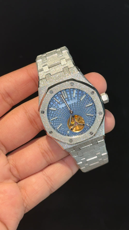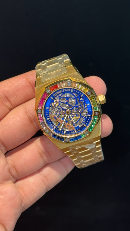 AP Skeleton | Gold Chain | Rainbow Diamond Bezel | Blue Dial