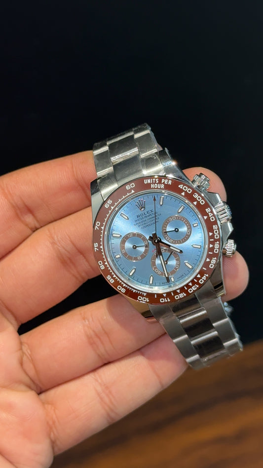 Premium Daytona | Platona | Silver Chain | Sky Blue Dial