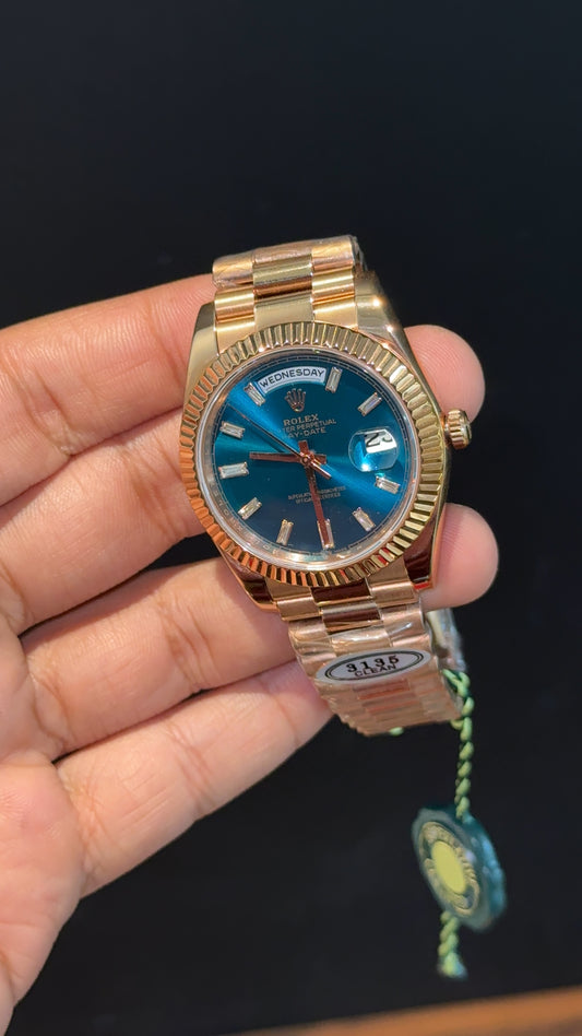 Premium DayDate | Gold Chain | Diamond Digit | Gradient Green Dial