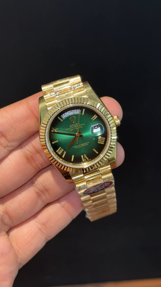 Premium Daydate | Gold Chain | Gradient Green Dial
