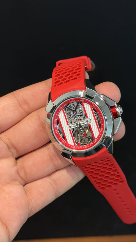 Jacob And Co | Silver Case | CR7 Edition | Red Strap | X Pendulum Machine | Red Dial