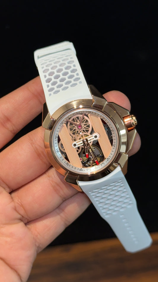 Jacob And Co | Rose Case | CR7 Edition | White Strap | Pendulum | Rose Machine Dial