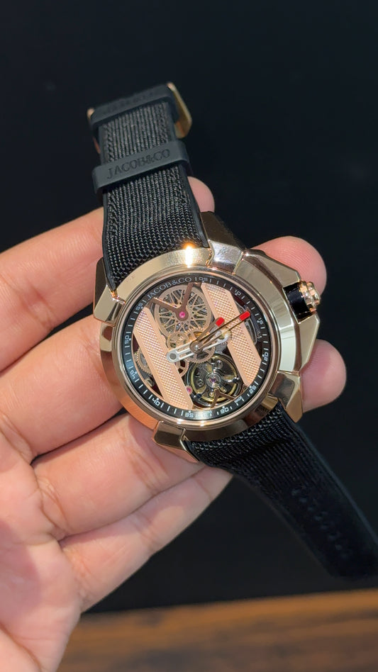 Jacob And Co | Rose Case | CR7 Edition | Black Strap | Pendulum | Rose Machine Dial