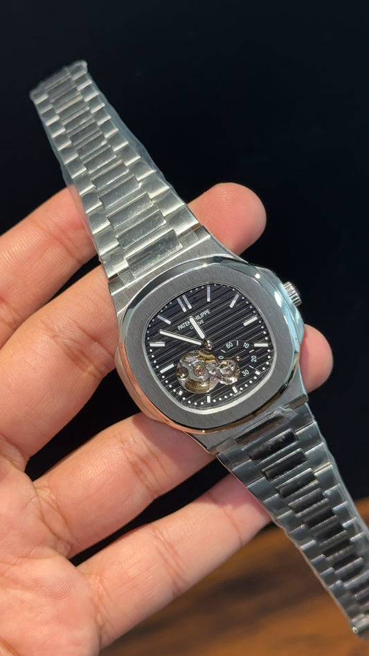 PP Auto | Silver Chain | Open Heart Edition | Black Dial