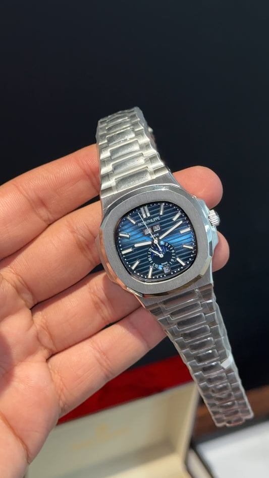 Pp Auto | Silver Chain | DayDate Edition | Moonphase | Blue Dial
