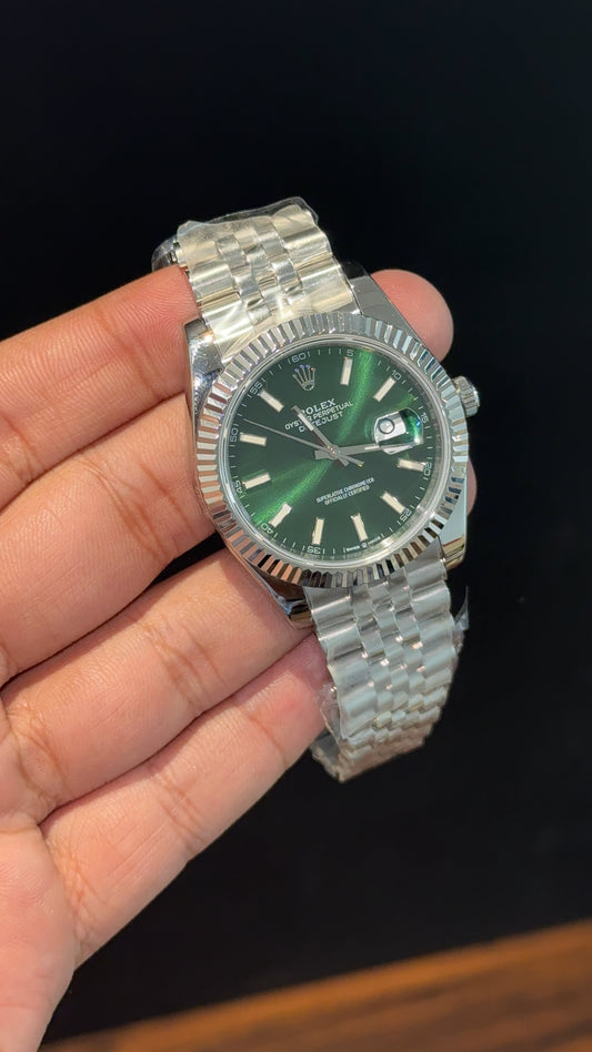 Premium Datejust | Silver Chain | Green Dial