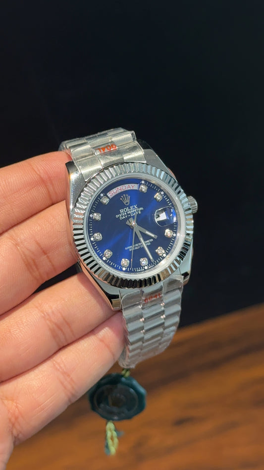 Daydate | Silver Chain | Diamond Digit | Blue Dial