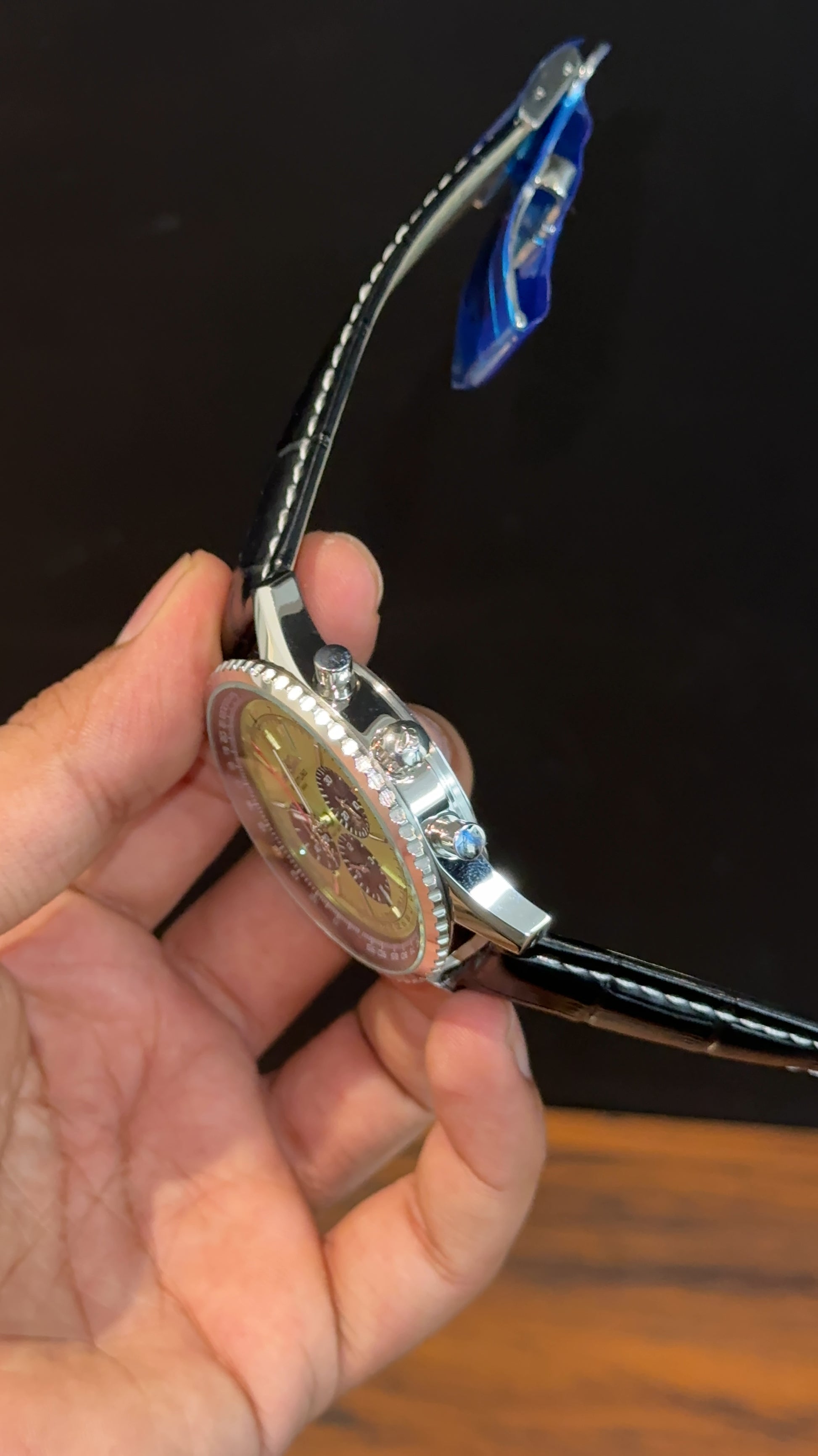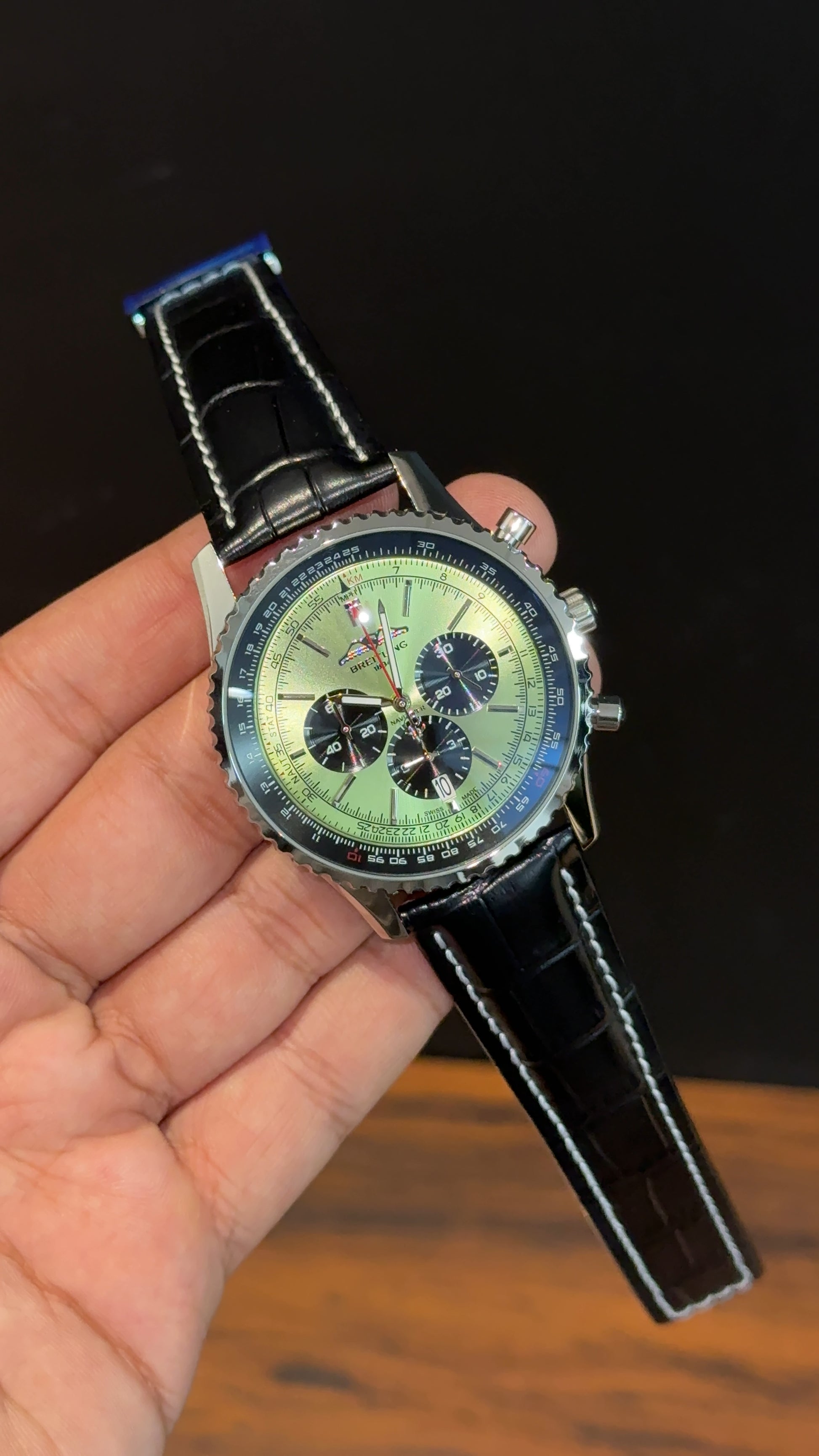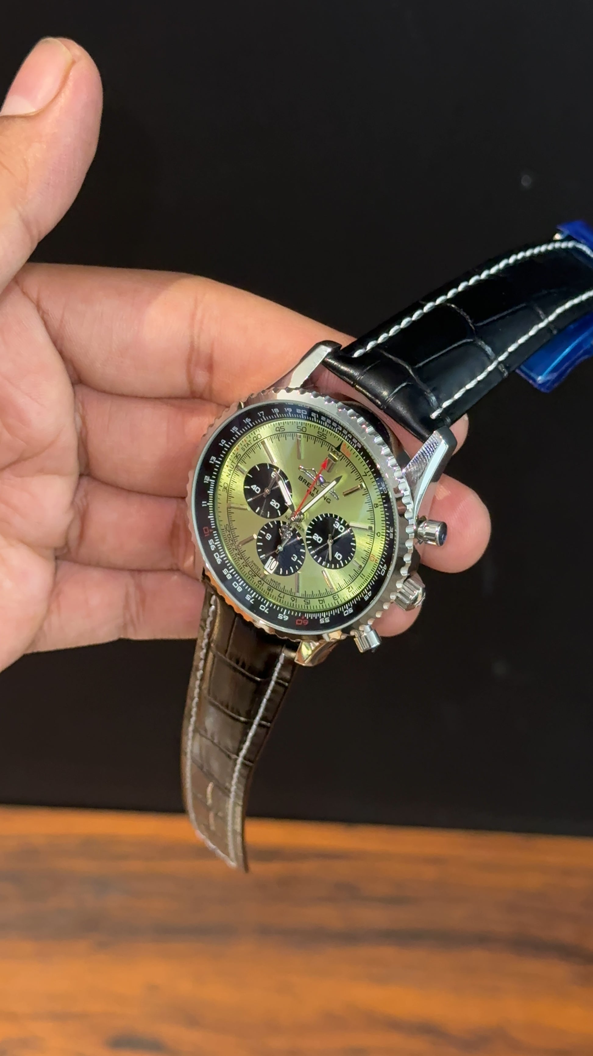 Brietling | Black Leather Strap | Black Chrono | Olive Green Dial