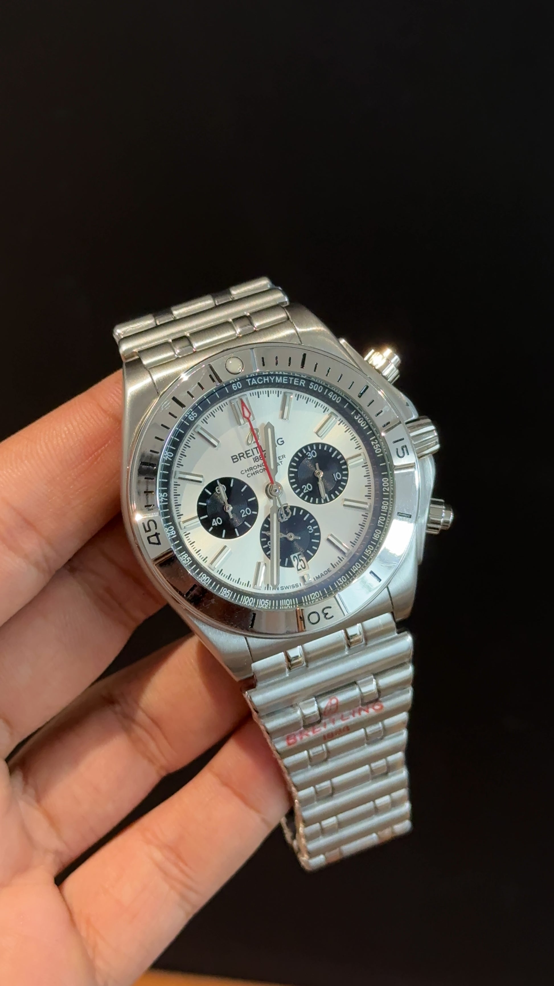 Brietling | Silver Chronomat Chain | Black Chrono | White Dial